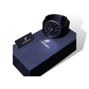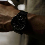 Experience premium minimalism with the limited release Advance Black Sands 40MM Mens Mesh Watch in Black and Silver. This timepiece features a sleek ultra-thin black face, with the OG NCMPRBL Logo. The comfortable black Milanese mesh bracelet offers both style and sophistication, perfect for any look.