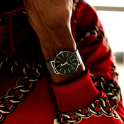 Advance Night Cap 40MM Unisex Milanese Mesh Watch In Silver and Black —a timepiece that completes your contemporary minimalist look and redefines distinction. This 40MM unisex milanese mesh Watch features an ultra-sleek and thin design that not only embodies merging lightweight understated quality luxury but also adds a layer of depth and sophistication to your impeccable taste.
