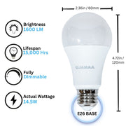 ENERGY SAVING – Requiring only 14.5 watts of energy, the 100 watt equivalent LED bulbs can save you up to 85% on your energy bill if you're currently using the old 100w incandescent bulbs.