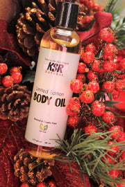 This is our limited edition, scented version of body oil. Winter Pom is scented with the lovely aroma of pomegranate, peppermint & lemon. Peppermint does wonders for the skin especially dry and itchy. Lemon is a just a good friend all around for our skin & consumption (he’s the the bacteria & germ killer). Now, pomegranate is just a lovely smell overall, but when combined with lemon & peppermint; it takes you to a whole other level. Most importantly, during the winter you're completely covered with locked-in- moisture even with frigid degrees. Your skin will thank you, as it will be soft and supple & moisturized.