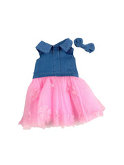 Pink Denim Tutu Dress & Bow - For 18" dolls: Outfit Only