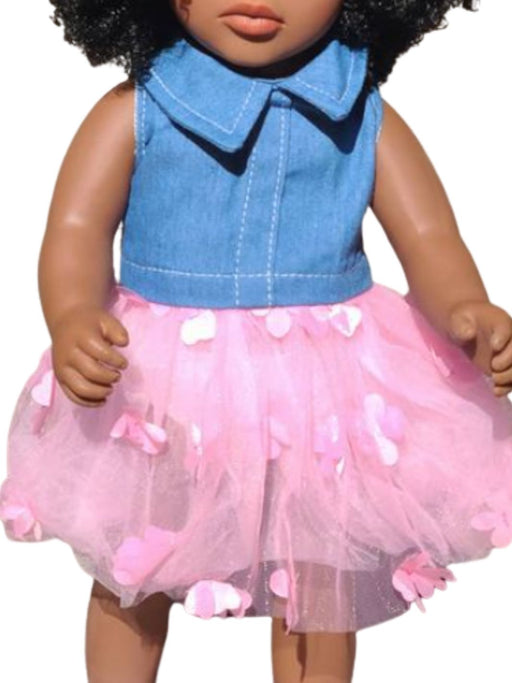 Pink Denim Tutu Dress & Bow - For 18" dolls: Outfit Only