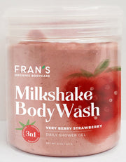 Fran's Organic Body care has done it again! Introducing Milkshake, our new 3n1 bodywash with natural Superfoods.  Our debut aroma was Very Berry Strawberry with real Strawberry Powder Superfood. Dive into this super creamy, luxurious bodywash formulated to clean, Moisturize, and exfoliate dead skin on face and body. Its the perfect trio. Great for your daily regimen and perfect for on the go and travel. Best when used with African Sapo Sponge for intense lather.  If you want soft glowing skin, don't just shower,  grab"MILKSHAKE"!  ***New for 2023 - Say hello to Ynot Yuzu.  Its a blast!!
