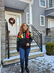 Step into Royalty and wear your crown every day. This multicolor sweater brings boldness, creativity, and African excellence to life. Paired with our scarf and beanie, it’s a head-to-toe vibe that says, 'I know who I am, and I love where I’m from.