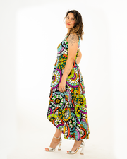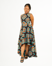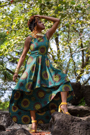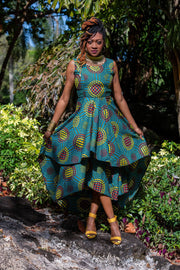 • This beautiful multi-layered dress, with a high-low bottom hem and sleeveless bodice, is made from African Ankara print and is perfect for the upcoming sunny season!