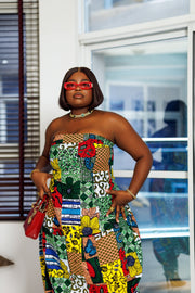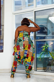 - Vibrant, and eye-catching, the Chinasa Strapless Parachute Jumpsuit features an elegant strapless square neckline upper part, oversized harem pants with a fitted ankle, and front pockets making it the perfect jumpsuit for the summer. It is harmony among vivid and bright colors such as red, yellow, and softer shades of green and orange.