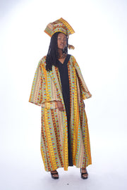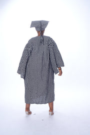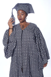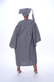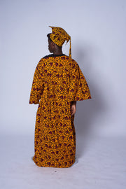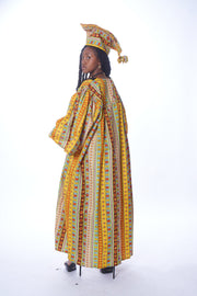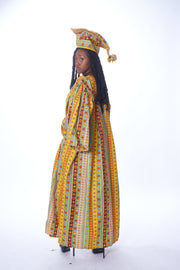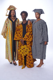 - Our high-quality Gusiri graduation outfits are designed with African fabric. The graduation outfits include a matching fancy cap and gown. The regal graduation gown is embellished with multicolor prints that commemorate warm colors like red and orange for a grand look. What other way to celebrate your special day than to look like royalty? Treat yourself for your hard work.