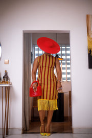 - A relaxed fit mini dress with fringe on bottom, designed with a traditional African Ankara fabric of multicolor pattern, that gives you a style and look made for setting the trends!