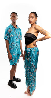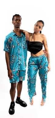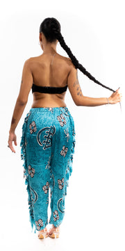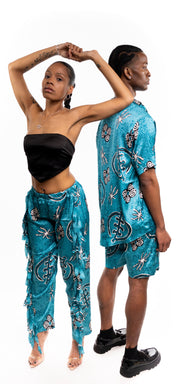 - This pair of comfortable slim-fit pants is designed with African fabric. The unisex patterned pants feature African prints, scaled to feel like a lavish texture. They also include patterned pockets that blend with the pants for convenience and subtlety. Wear these timeless pants with simple shoes for both casual and formal events!