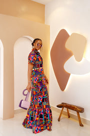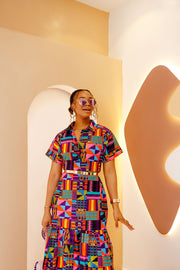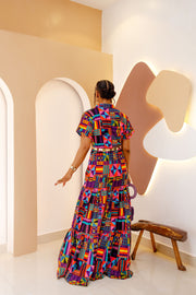 • This sophisticated unlined kaftan dress is designed with traditional African Ankara fabric shown in multi-colors. The buttoned front style is perfect for making a grand impression!