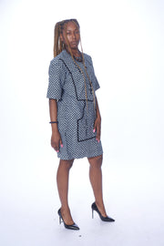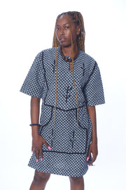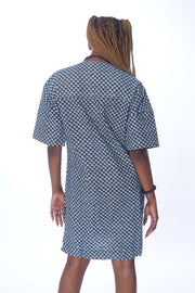 - This fancy shirt dress with medium length sleeves is designed with African fabric. The crewneck shirt fits loosely and falls slightly below the hips and above the knees for comfort. It includes a kangaroo pocket design that boldens the outfit. The grey prints are scaled to feel like a luxurious texture. Wear this with your favorite jewelry and any pair of shoes for a complete look!