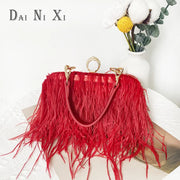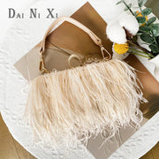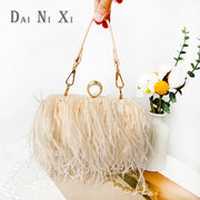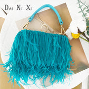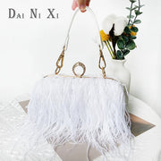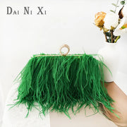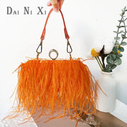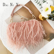 Ostrich Fuax Fur Feather Wallet Clutch Bag