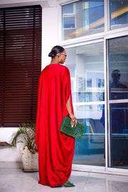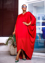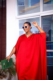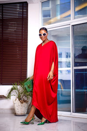 - This elegant unlined kaftan maxi dress is designed with a red silk fabric, making it a breathable staple for the summer.