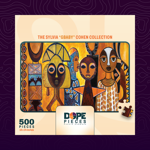 Tribe is a 500-piece puzzle by Sylvia 'GBaby' Cohen that celebrates connection, community, and shared heritage. With vibrant golds, blues, and eart...
